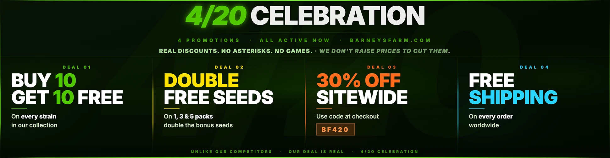 Vítá vás seed bank Barney's Farm, která poskytuje jedinečnou, bezpečnou a důvěryhodnou platformu pro online prodej konopných semen. Jako světoví průkopníci ve šlechtění konopí se snažíme našim zákazníkům poskytovat konopná semena nejvyšší kvality z celého světa. Když se rozhodnete pro Barney's Farm, vybíráte si důvěryhodné místo pro objednávání konopných semen. Naše platforma zajišťuje bezpečné transakce, diskrétní přepravu a výjimečný zákaznický servis.